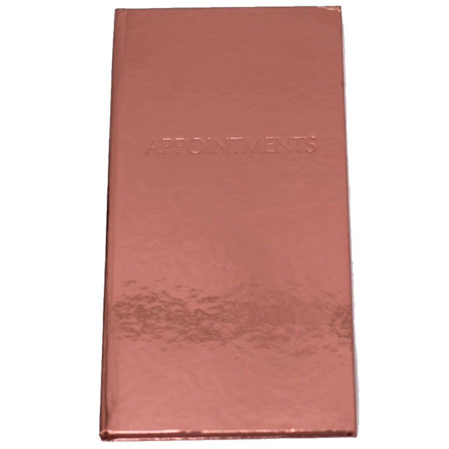 3 Column Bronze Appointment Book: These are covered in a shiny 'mirror' paper and has the word APPOINTMENTS blind embossed on the front. It has 15-minute appointment slots from 8.00am to 8.00pm on a single page.
