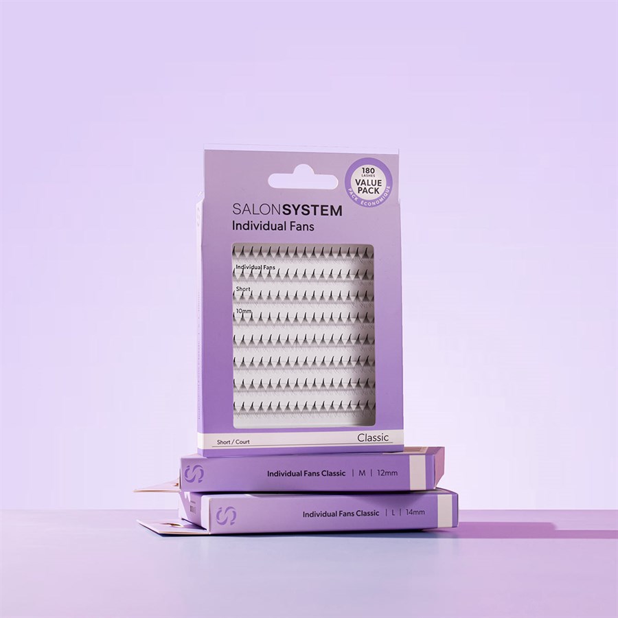 Meet the new generation of individual fan lashes! These medium length fans are ultra soft and made from premium fibres. Now available in an ultra-value pack of 180 fans per tray.