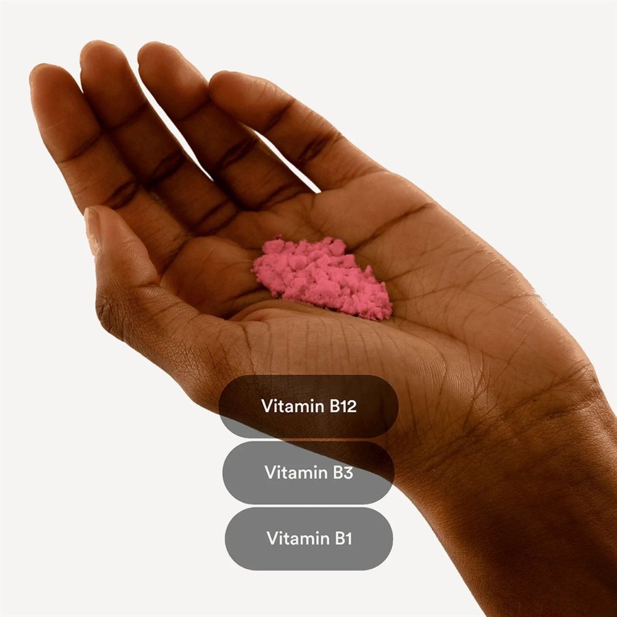 Caffeine 3.12mg, Vitamin B1 (Thiamine Mononitrate) 1.2mg, Vitamin B2 (Riboflavin) 1.3mg, Vitamin B3 (Nicotinamide) 12mg, Vitamin B5 (Calcium D-Pantothenate) 5mg, Vitamin B6 (Pyridoxal 5-Phosphate) 1.7mg, Vitamin B12 (Methylcobalamin) 600mcg, Vitamin B9 (Folate as 5-MTHF L-Methylfolate) 40mcg, Vitamin B7 (Biotin) 30mcg