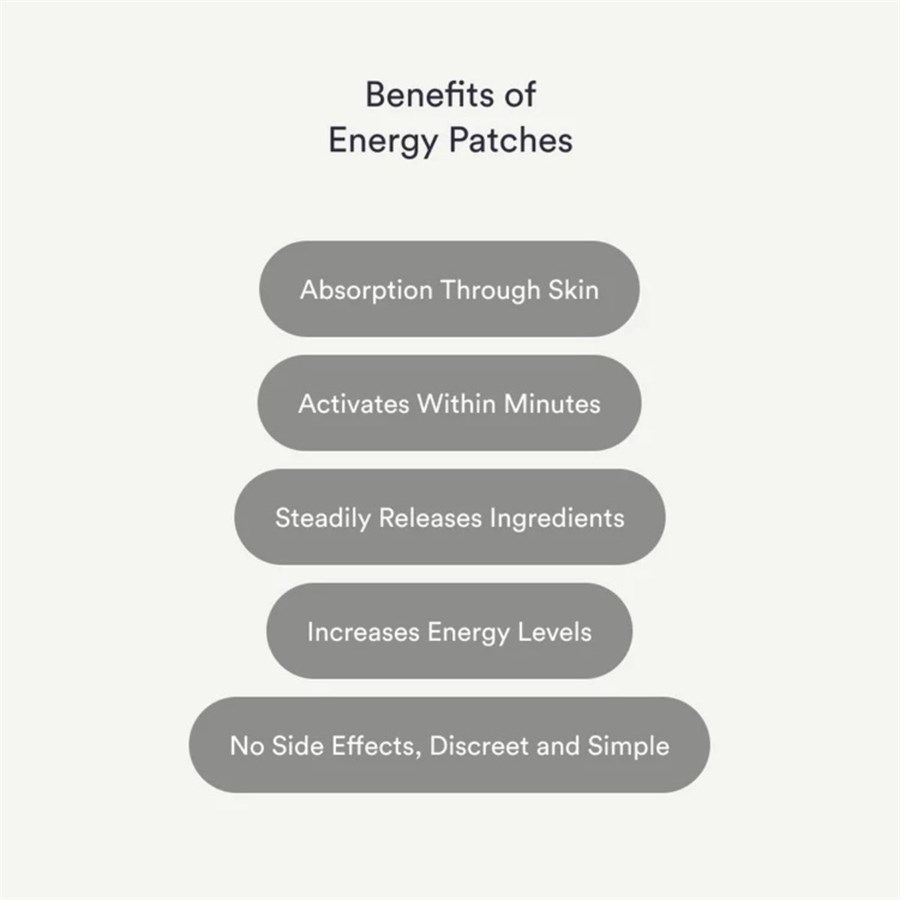 Feeling fatigued and in need of a boost? Discover Energy Patches—carefully crafted with Vitamin B3, Vitamin B5, and a microdose of caffeine to naturally elevate your energy levels. Designed with gradual release to deliver a smooth, sustained lift throughout the day, these patches help fight fatigue and sharpen focus. Easy to use and effective, they’re your daily ally for a more energized you.