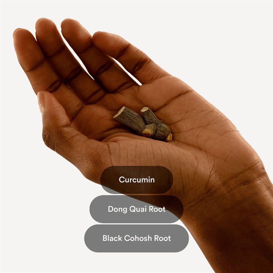 Vitamin B9 (Folate as 5-MTHF L-Methylfolate) 300mcg DFE 75%*, Vitamin B12 (Methylcobalamin) 1mg 16660%*, Vitamin D3 (Cholecalciferol) 200mcg 1000%*, Calcium (Calcium Citrate) 1.5mg 0.1%*, Phosphorus (Calcium Phosphate) 1mg 0.12%*, Selenium (Selenomethionine) 100mcg 0.18%*, Curcumin 2mg, Dong Quai Root Extract 1.5mg, Licorice Root Extract 1mg, Black Cohosh Root Extract 1mg