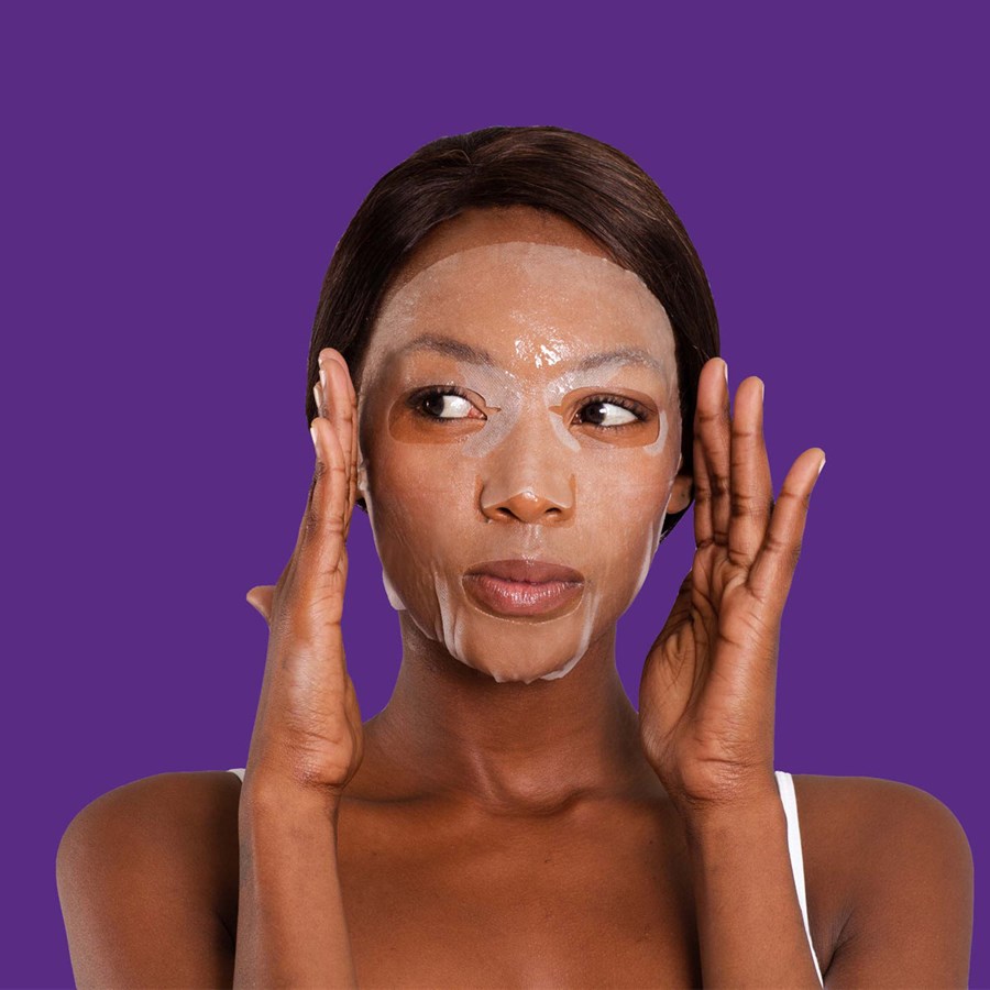 Facial sheet mask drenched in a powerful antiaging serum for younger looking skin. Promotes firmer, younger looking skin, Improves elasticity and Smoothes the appearance of fine lines and deep wrinkles.