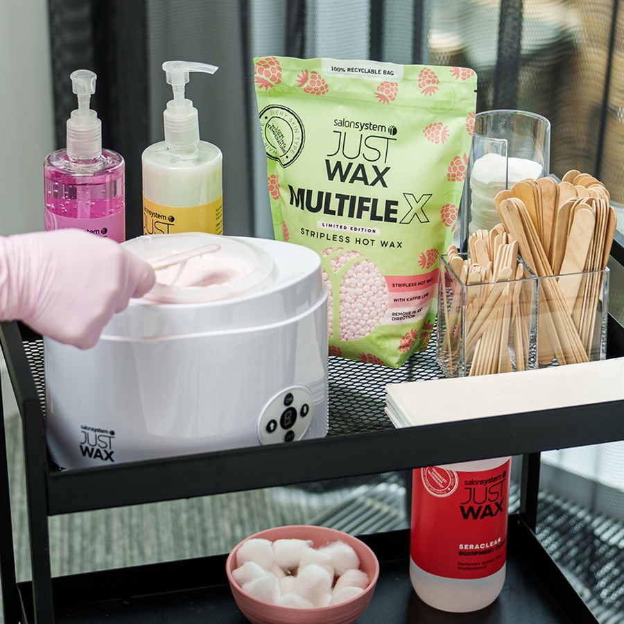 1.Pour the required quantity of Just Wax Multiflex beads either directly into the heater or use a Disposable Inner Pot and heat.