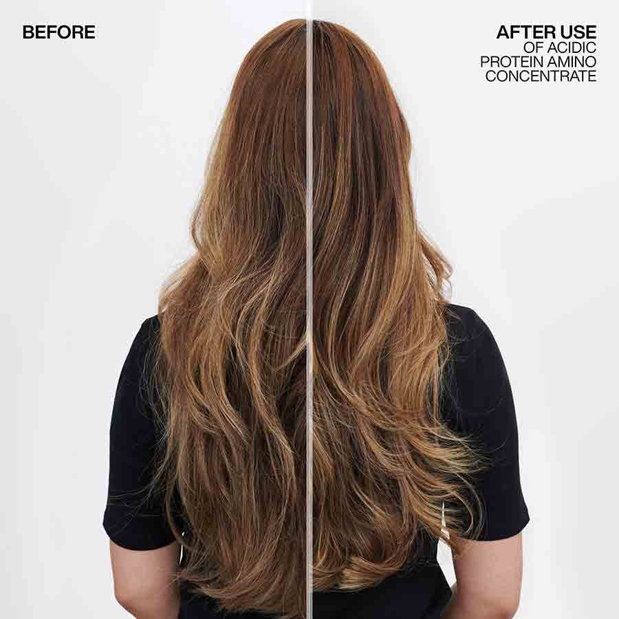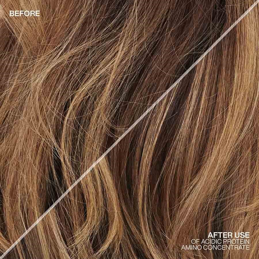 Formulated with 7% Cationic + Amino Acids. For professional use only to balance protein levels of hair. Helping to reduce breakage and repair strength. Suitable for color treated hair. Visibly reverses the appearance of surface damage in a single use when used as a system with Acidic Moisture Concentrate and Acidic pH Sealer. Formulated at salon expert concentration.