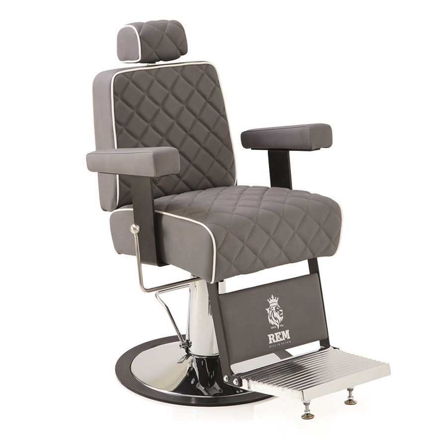 Britannia, brother to the Kingsman. This Barber Chair by REM is finished in Classic Diamond Stitched Upholstery with a reclining seat system, adjustable headrest. As with all REM Barber Chairs the Britannia is supplied with the proven heavy duty Hydraulic Base system.