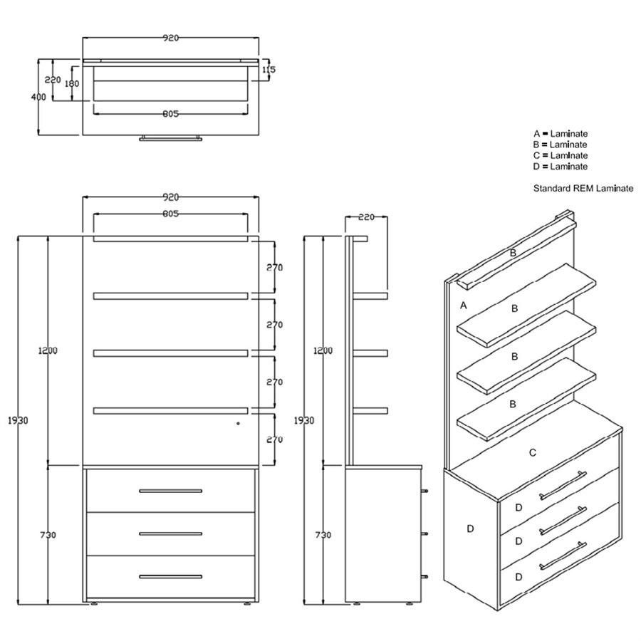 - Shelf Width: 805 mm