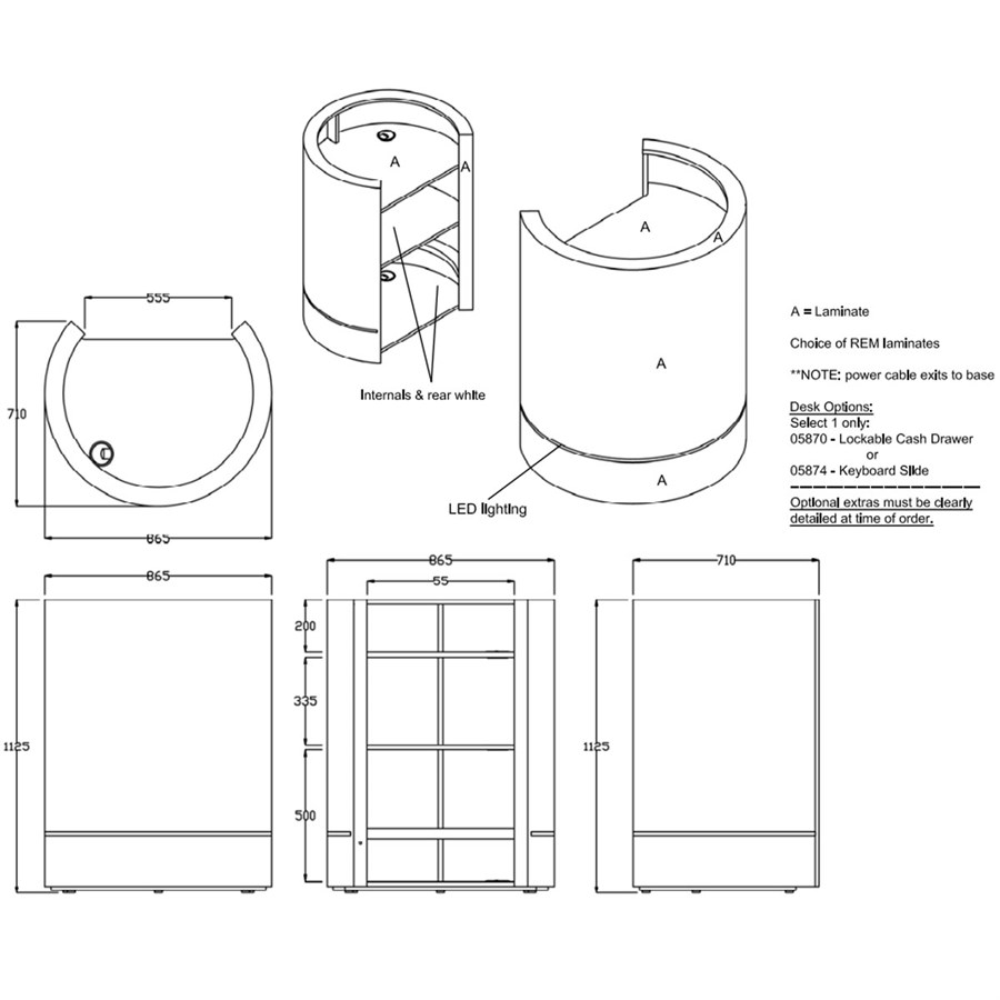 The round Pod Salon Desk is perfect for small salons or salons with a small space available. The internal shelf offers storage space for paperwork and the internal cable port keeps the desk nice and organised. The LED light on the bottom is a nice feature and comes with an on/off button.