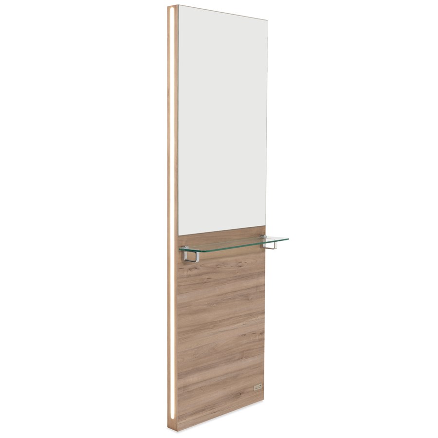 This wall unit does not come with a lower mirror. Destiny is a refined, floor length Styling Station with a distinctive modern aesthetic and wall mounted. Features include a toughened glass shelf with chrome brackets amd LED lights to the unit sides.