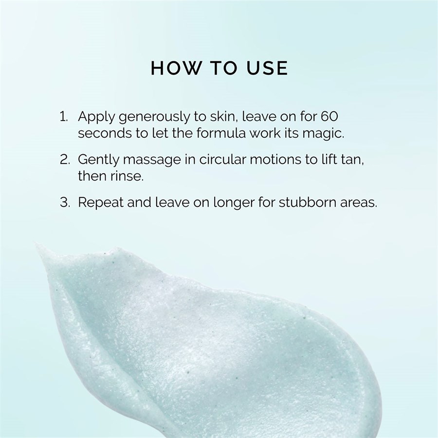 - 60 Second Reset Technology - Powered by 60Sec HNO+™, this dual action formula uses physical and chemical exfoliants to quickly remove old tan in just one minute.
