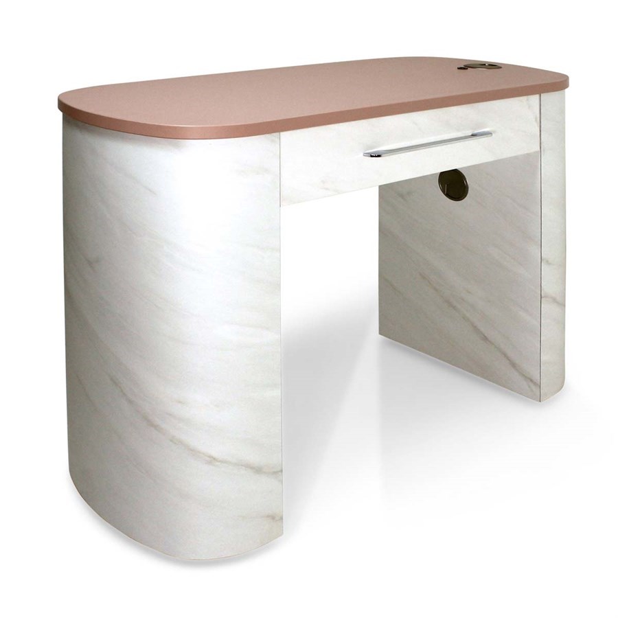Finalise your Nail Salon Design with the beautiful curved Capri Nail Table. Every position comes with a storage drawer and cable management ports, to keep your desk tidy. The work surface is acetone resistant.