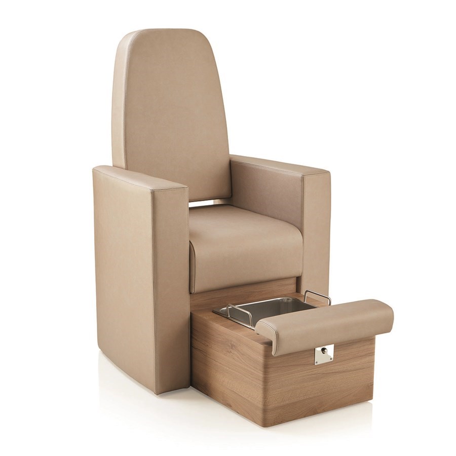 No need for plumbing with this new Pedicure unit by REM. The Fantasy has a removable stainless steel basin that can be easily removed for cleaning. When not in use the basin section can be stored away under the seat to allow other treatments