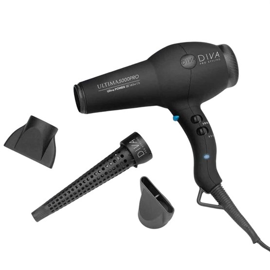 Black: Diva’s ultimate powerhouse of a dryer has blown into view. The Ultima 5000 PRO has 50% more air pressure than your standard dryer.
