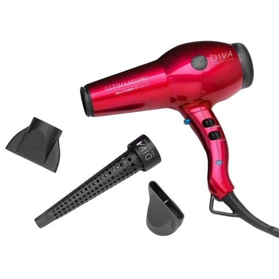 Red: Diva’s ultimate powerhouse of a dryer has blown into view. The Ultima 5000 PRO has 50% more air pressure than your standard dryer.
