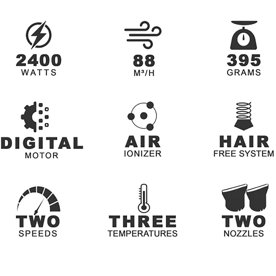 Frizzy hair is a thing of the past, thanks to the Air Ionizer Tech which optimises the emission of negative ions and combines with the integrated ceramic grill to ensure sleek, beautiful hair. A new-wave heating element with variable geometry has increased the power of the Parlux DIGITALYON hair dryer to 2400 watts, whilst maintaining a uniform heat distribution. Add in the newly designed straightening nozzle and the outcome is stunningly smooth blow drys time after time.