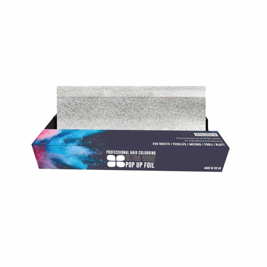 Procare Embossed Silver Ultra Wide hair foil pop up sheets are meticulously crafted and designed to provide exceptional performance, ease of use, and stunning results in every hair colouring session. These foil sheets are 270mm x 300mm providing an extended coverage area, making them ideal for all hair lengths and styles.