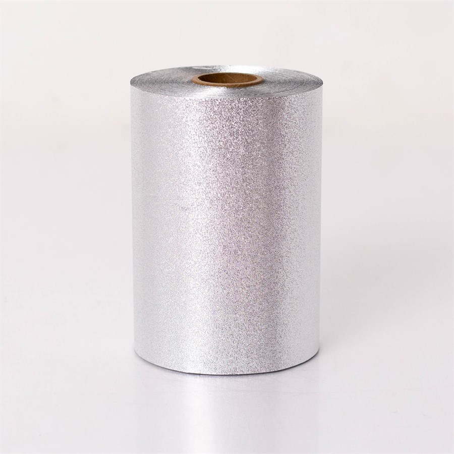 Ultrawide premium embossed foil roll (150mm x 100m) with a glittery silver finish, designed for precision, grip, and professional colouring results.
