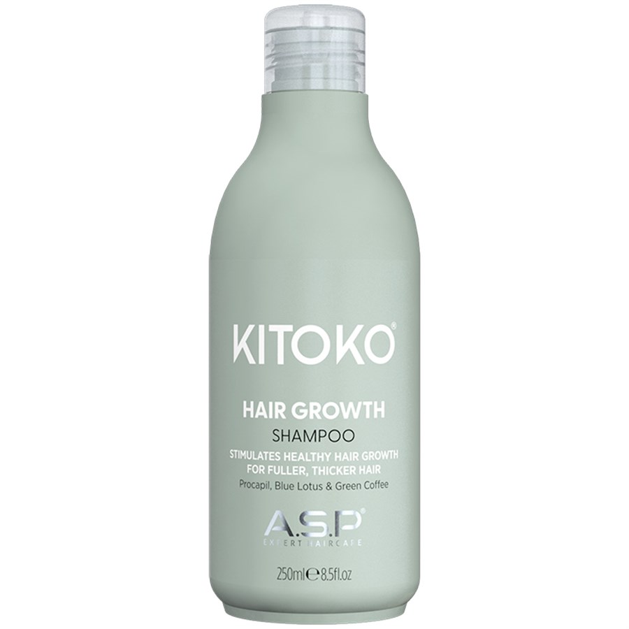 A.S.P Kitoko Hair Growth Shampoo 250ml gently cleanses while revitalising the scalp to stimulate thicker, stronger growth.