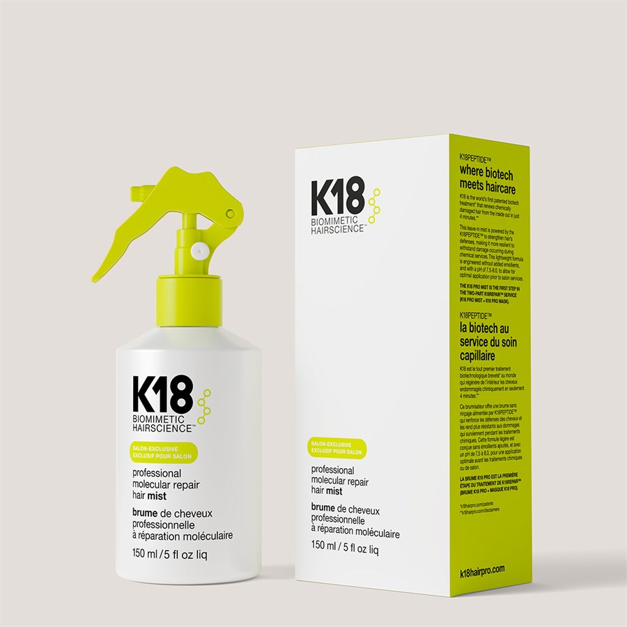 Designed to be the first step in the K18 molecular repair service, the PRO mist is a simplified formula without added emollients, and with a pH of 7.5-8.0, allows for optimal application prior to chemical or salon services.