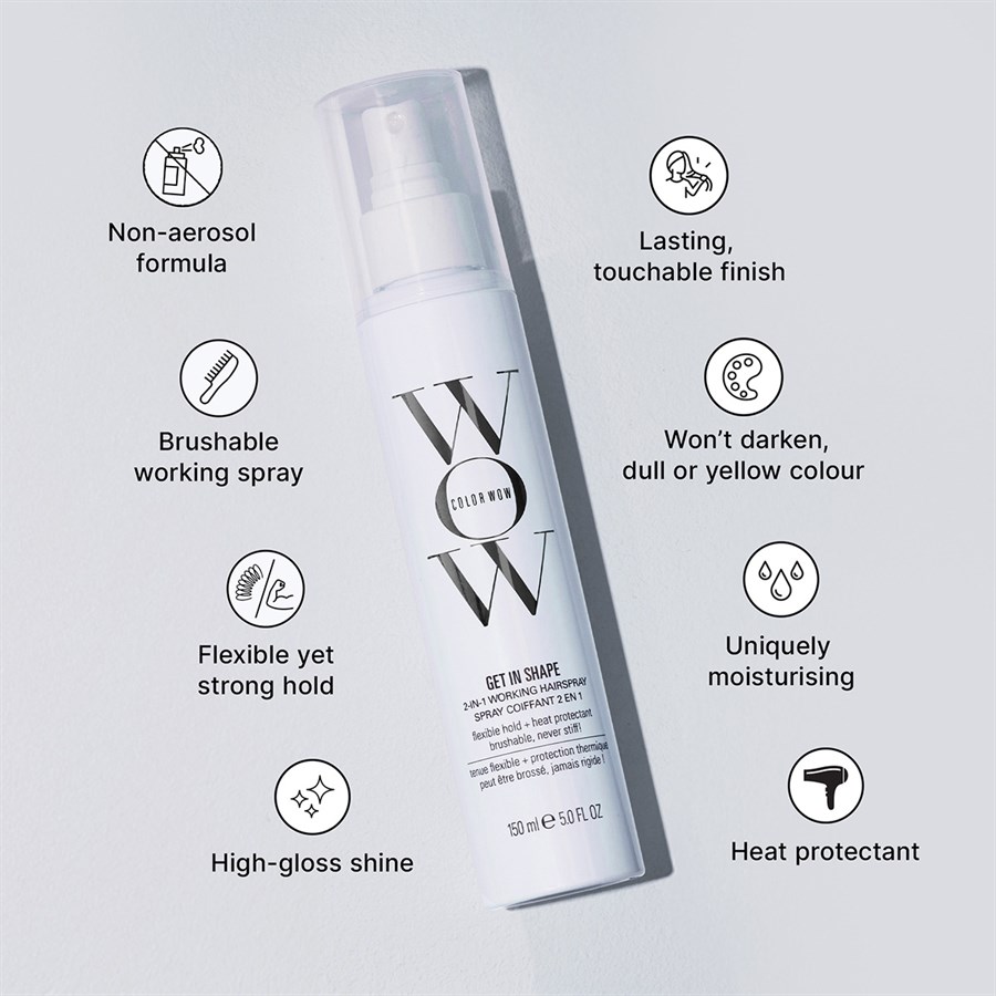 Get In Shape uses a breakthrough blend of elasticising polymers to create shape memory, cutting-edge heat protectants to safeguard strands, and humectants to hydrate and boost shine.