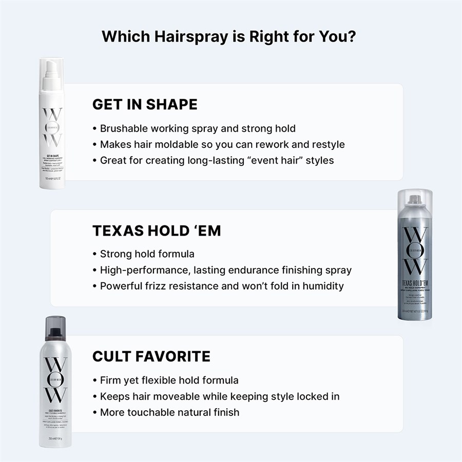 A non-aerosol shaping hairspray that sculpts, moulds and gives brushable, lasting hold.
