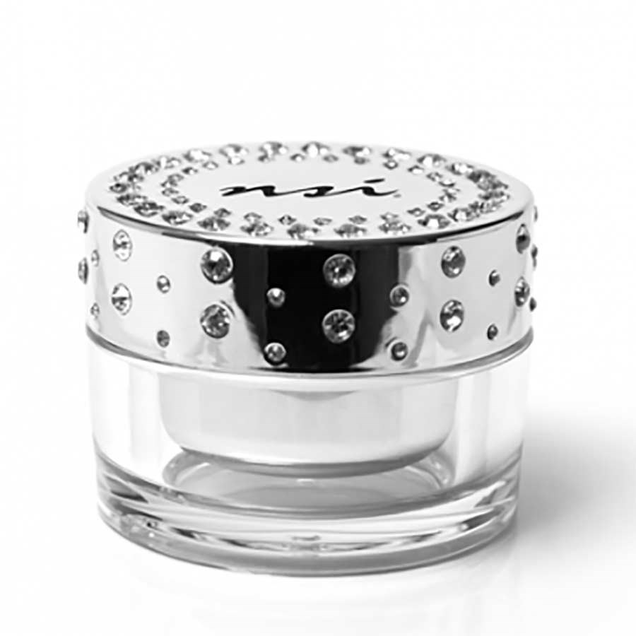 The jar itself is made of sturdy plastic and has glimmering jewels embedded in the lid. It’s a beautiful addition to your workstation, and it can be used for more than just storing product!