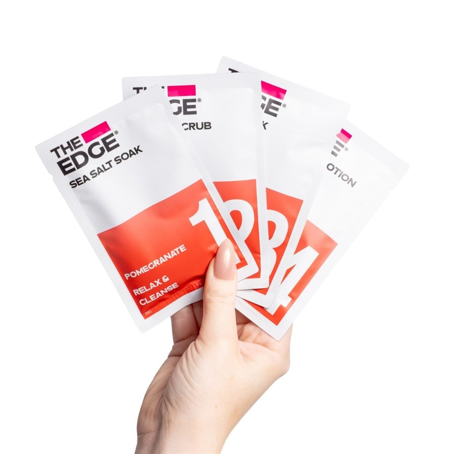 Each pack contains the perfect amount of product for one treatment, including a sea salt soak, exfoliating sugar scrub, nourishing mud mask, and soothing massage lotion. Infused with a fruity pomegranate fragrance, this pack gently exfoliates and hydrates, leaving feet feeling soft, smooth, and refreshed. Ideal for treating tired, dry feet, it brings a touch of relaxation to every pedicure.