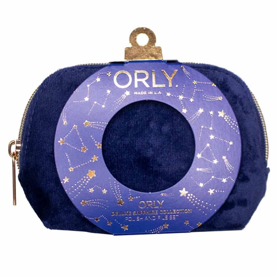 We're celebrating 45 years of ORLY with the gorgeous ORLY Deluxe Sapphire Collection Gift Set. The luxe velvet sapphire cosmetic bag holds two of our best selling 18ml vegan nail polish, ORLY Heart of Adventure red cre`me polish and ORLY Jungle Boogie gold glitter polish as well as our ORLY Professional travel crystal file.