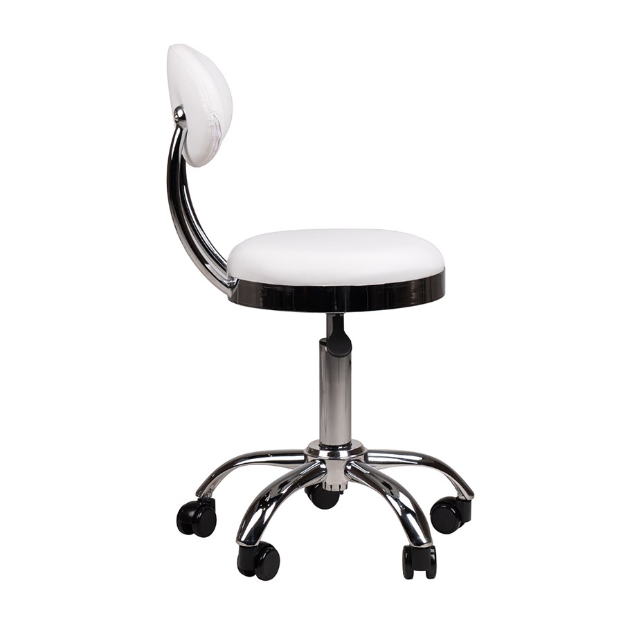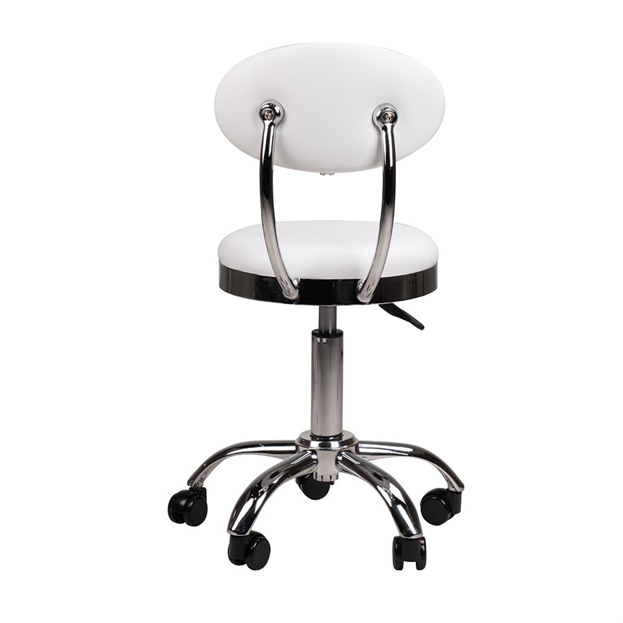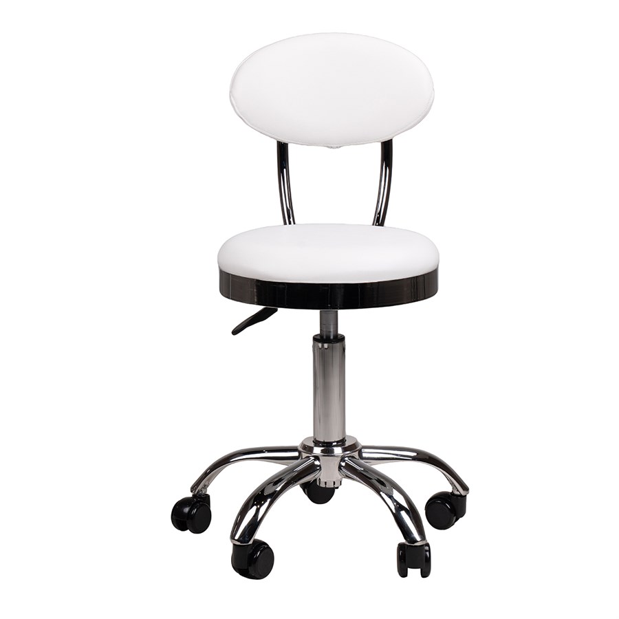 The high quality faux leather upholstery is soft, comfortable, and easy to clean. Easily adjust the height of the stool from 43cm to 56cm with the gas lift function. 5 easy-running wheels and 360 degree seat rotation allow the therapist to move around the salon with ease, making it ideal for a busy and dynamic environment.