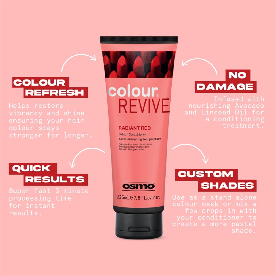 The reddest red with a slight orange undertone to refresh faded colour or to create a fiery glow on darker hair. Levels 1-10. This superfast 3 minute colour conditioning treatment helps restore colour vibrancy, shine and nourishment for salon-worthy results.