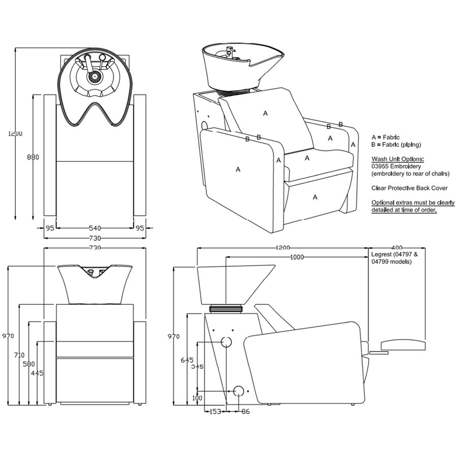 Add your business logo to the front of the chair, in high quality embroidery. To customise the unit even further you have the option to add several features, which include a basin neck rest, bottle trap or a link unit to combine more than one of this units.