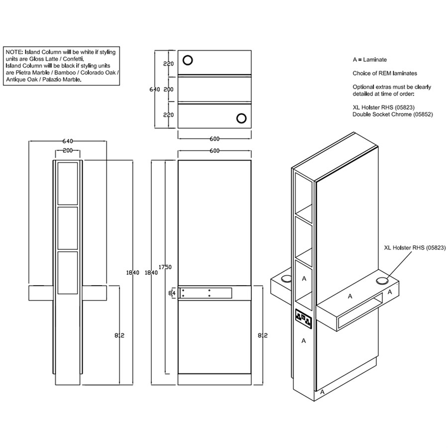 REM Rimini Island Styling Unit - 2 Position - No Lower Mirror