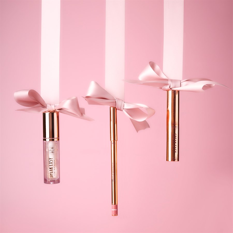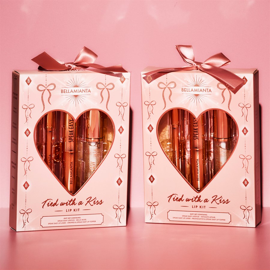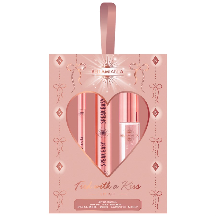 Let your lips do the talking with the Bellamianta Tied with a Kiss Speakeasy Lip Kit. Inside you'll find the Speakeasy Lipstick in Bella Muse, Speakeasy Lipliner in Stripped, and Speakeasy Lip Topper. Wear each product individually or layered together for versatile styles. This luxury trio that makes the perfect gift for lip lovers and beauty enthusiasts.
